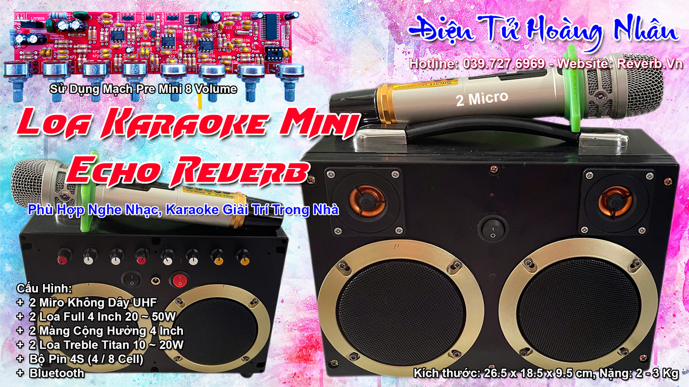 Loa Karaoke Xách Tay DIY Mini có Echo Reverb, sản phẩm được làm thủ công với thiết kế nhỏ gọn, âm thanh trung thực, ít hú rít, phù hợp để nghe nhạc, karaoke giải trí trong nhà hoặc mang đi du lịch
